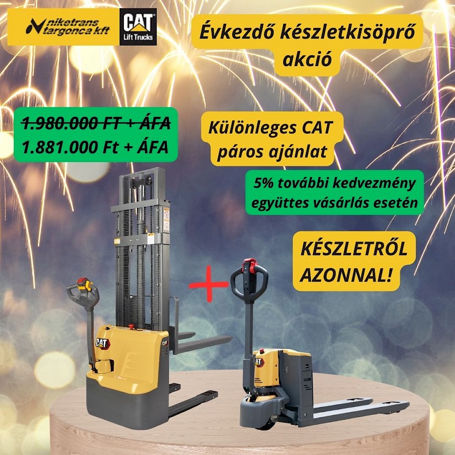 Évkezdő készletkisöprő akció! Különleges CAT páros ajánlat!  Prémium targonca, kiváló áron!